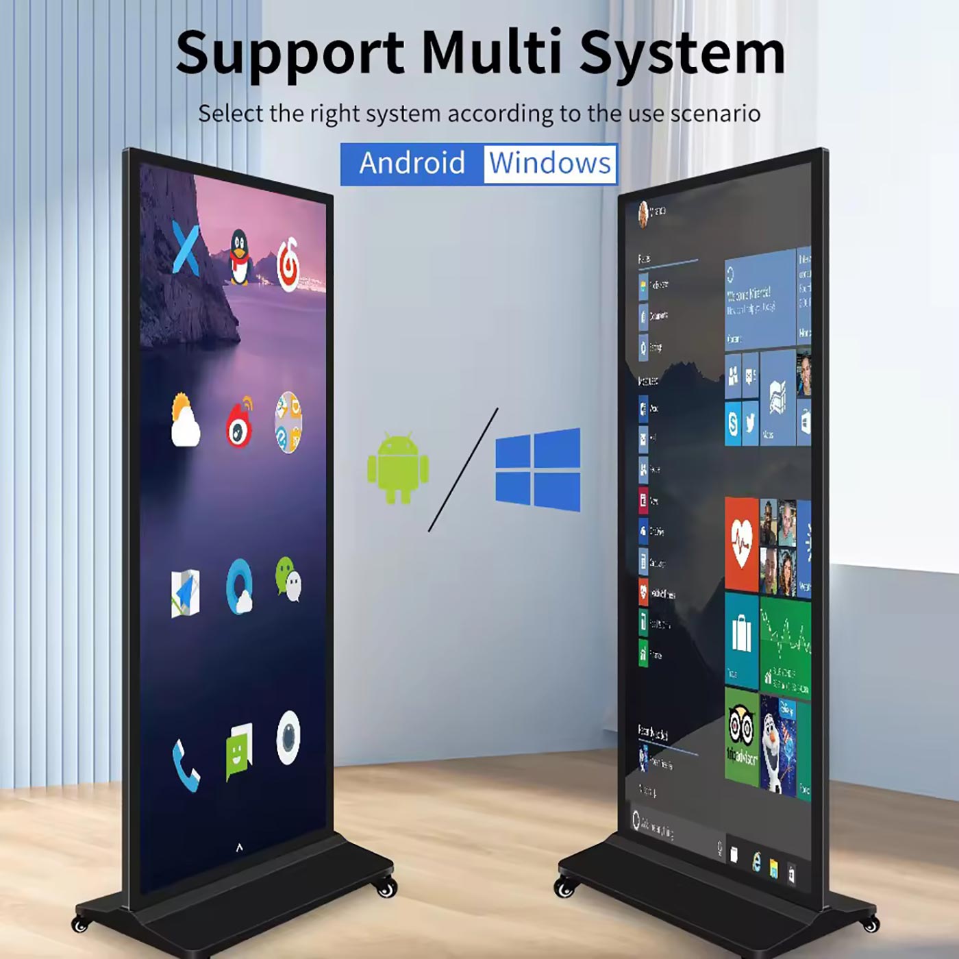 69.3inch indoor ultra-thin LCD free standing full screen digital signage,with ultra light design, easy to move and use, industrial aluminum housing, wear-resistant and shock-proof, with sepcial resolution of 1436*3840, using LedArt Advertising information publishing system, you can combine a few screens into a huge video wall, really bring you a visual feast, widely used in retail store, shopping mall, exhibition hall, Restaurant & Hotel Supplies, education, medical treatment.